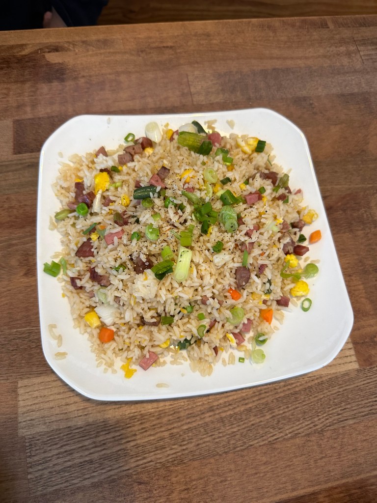 Our second course was their savory fried rice, served with American and Vietnamese sausage, eggs, and veggies. Which we love to dress with Hoisin and Siracha sauce.
