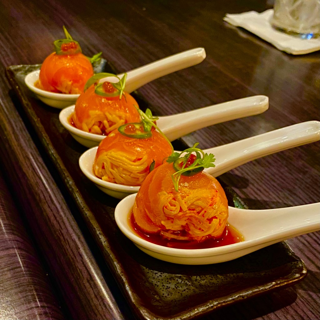 Our first course was their egg rolls, filled with pork, shrimp, veggies, and loads of seasoning in a crunchy wrapper, with a side of chili fish sauce.